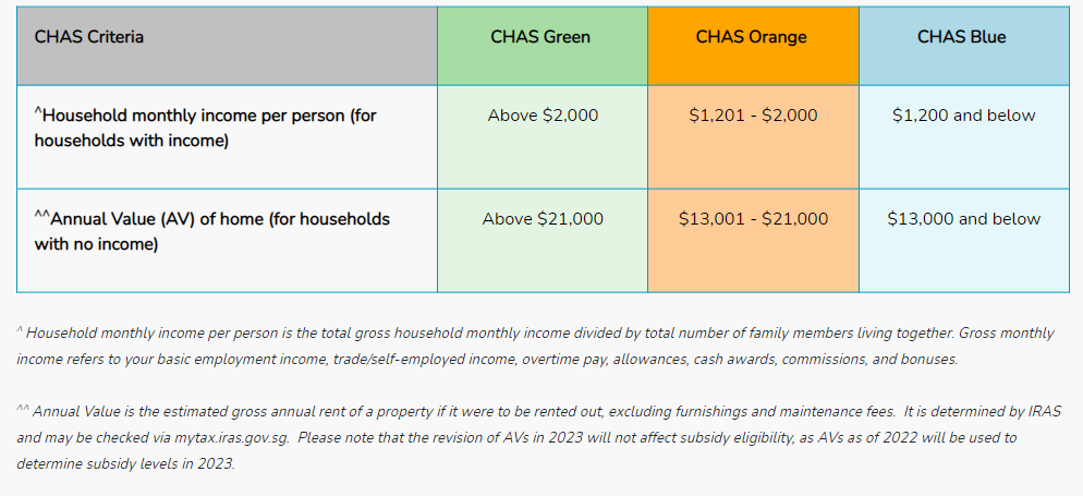 CHAS also provides special subsidies to all Pioneer Generation (PG) and Merdeka Generation (MG) seniors, regardless of income or AV of home. To read more about subsidies amount for each tier, do visit CHAS website.